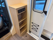 Bathroom - Sink / Fold away shower / Flush toilet / Storage cupboard / Mirror / Hot Water